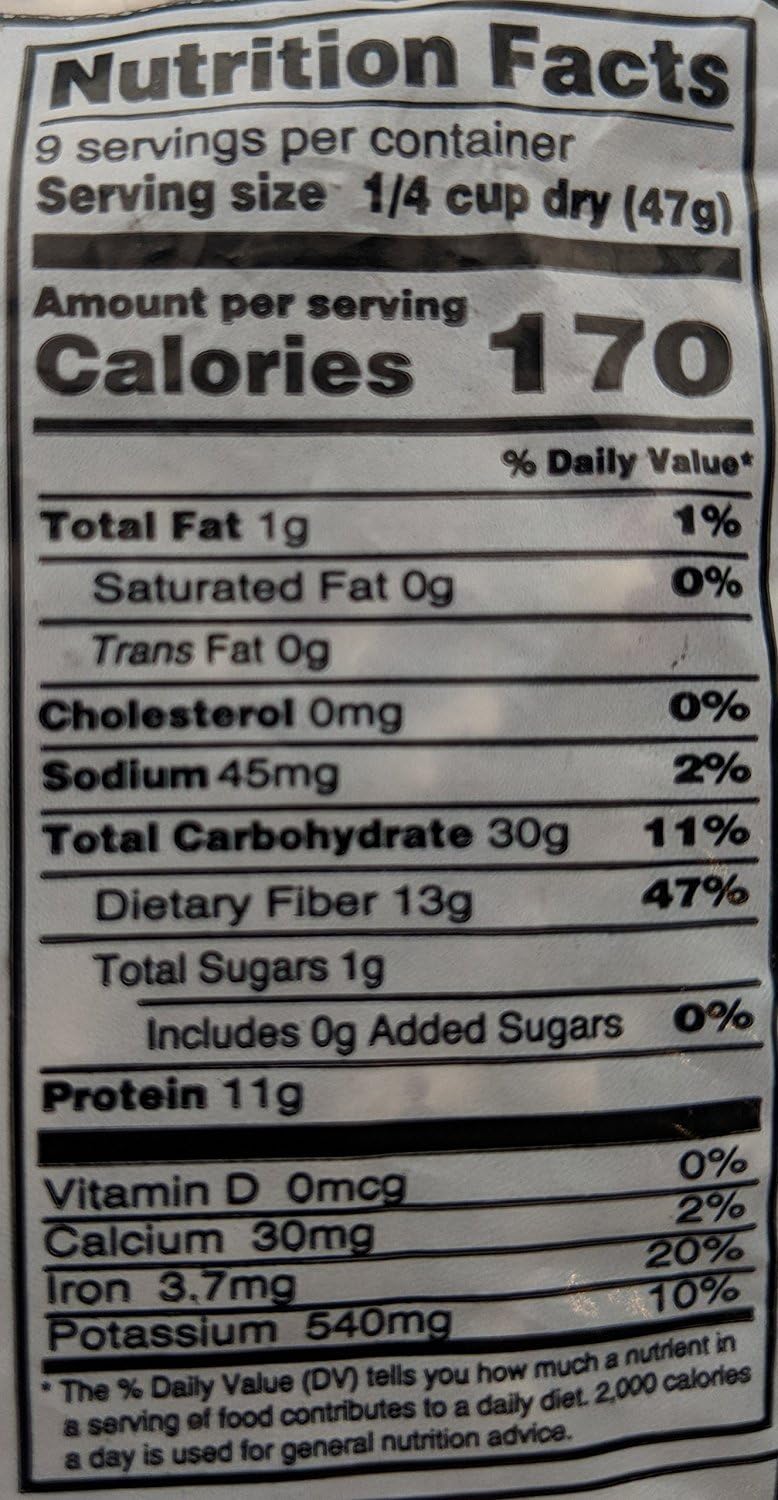 - Dietary Information: Low in fat and sodium; high in protein and fiber; contains no cholesterol