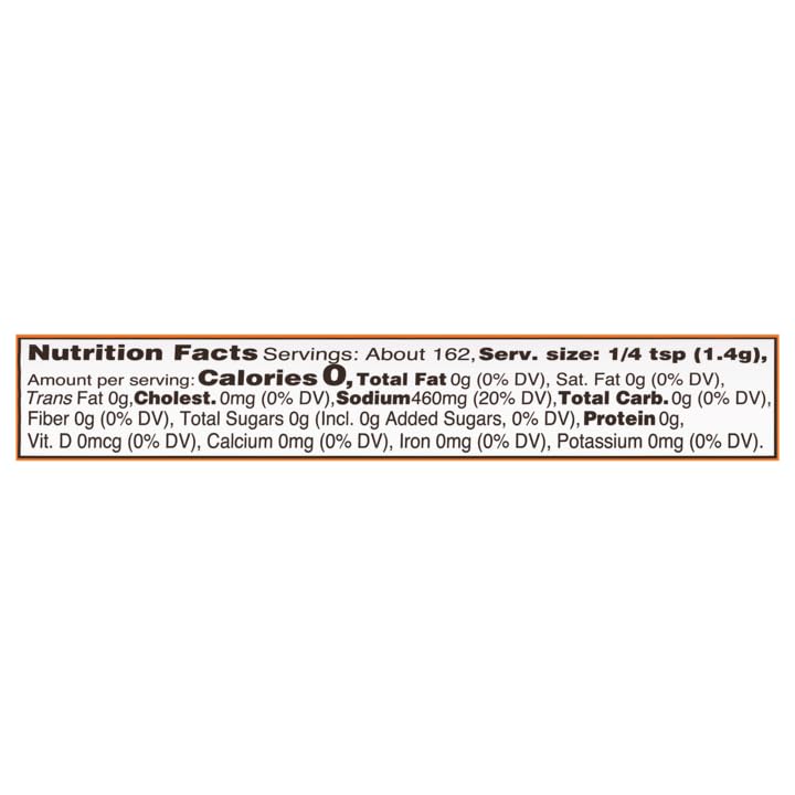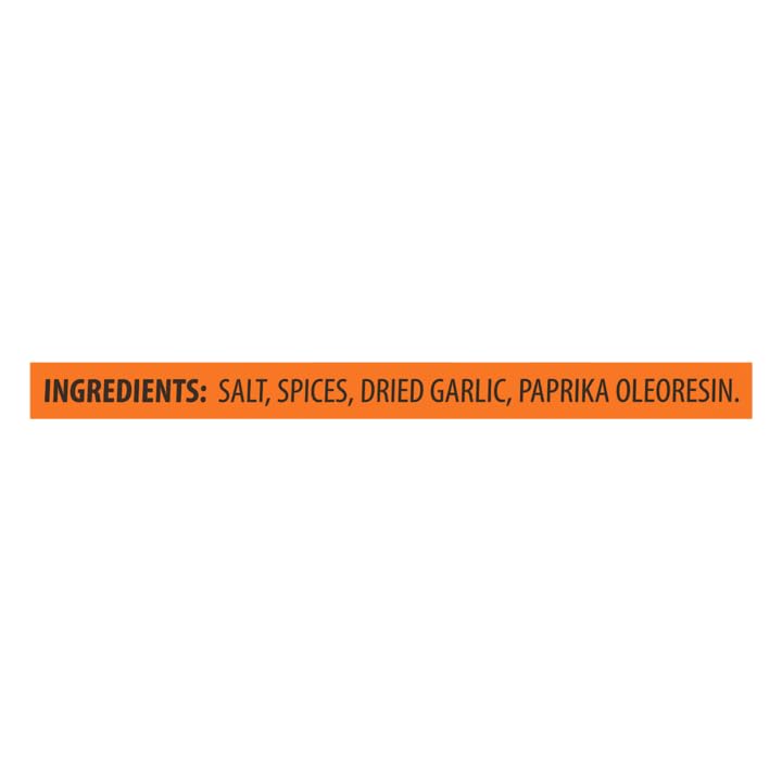 Salt, Spices, Dried Red Pepper, Dried Garlic, Paprika.