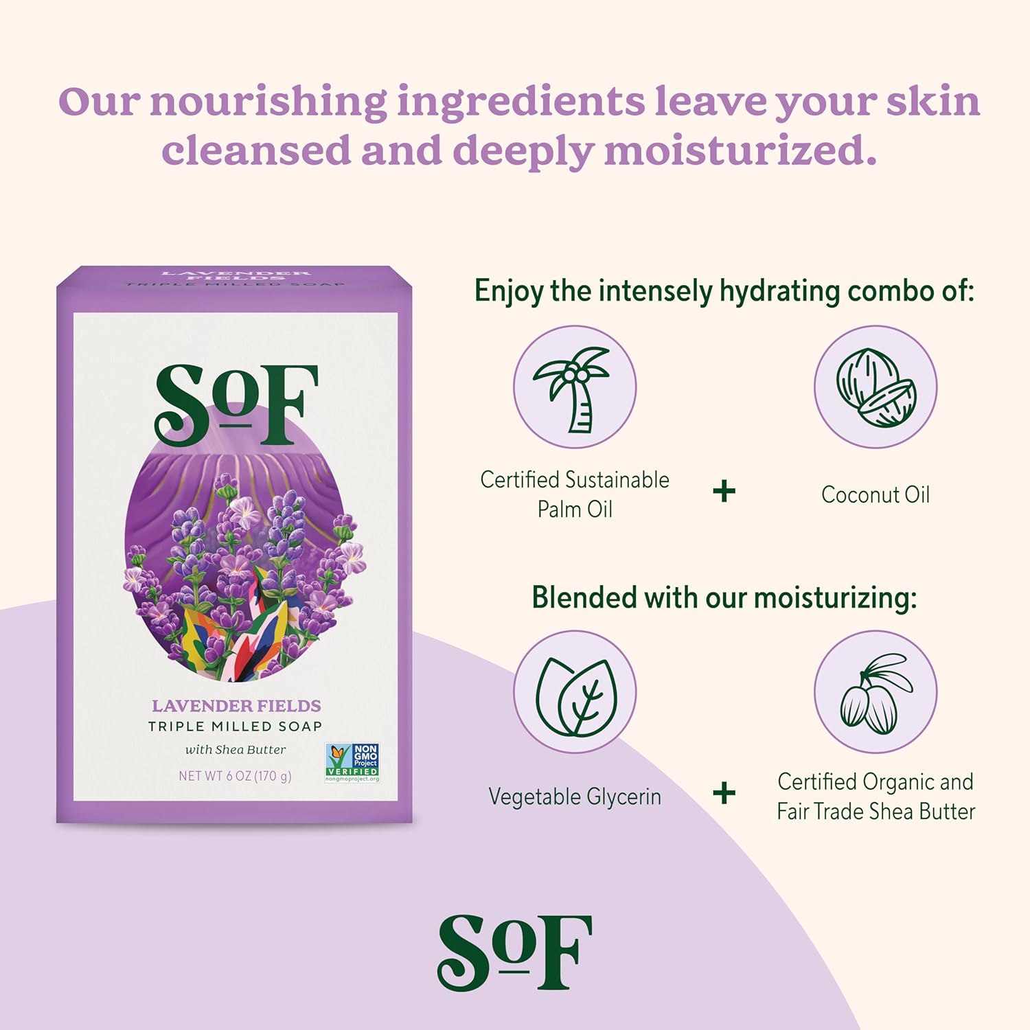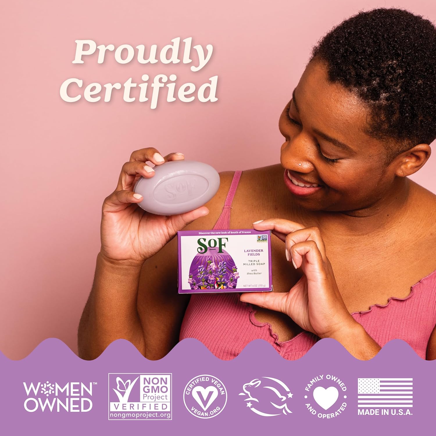 The South of France Lavender Fields Triple Milled Soap offers a luxurious bathing experience with its rich, creamy lather and soothing lavender scent. Crafted using the traditional triple milling process, this soap is made with natural ingredients including organic shea butter, olive oil, and essential oils. It gently cleanses and moisturizes the skin, leaving it feeling soft and refreshed. Free from harsh chemicals and animal testing, this soap is an eco-friendly choice for those seeking a natural and indulgent skincare option.